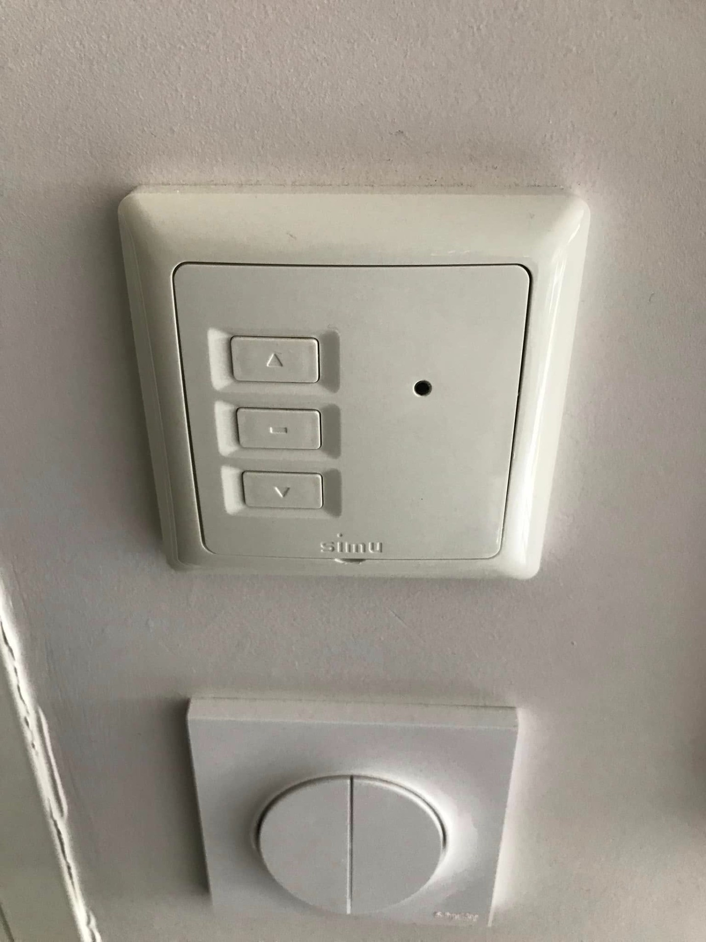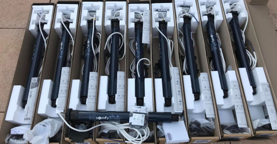 Conversion d’une installation Bubendorff en motorisation SOMFY RS100 IO avec émetteur individuel mural Smoove IO et commande groupée Situo IO à 5 scénarios possibles.